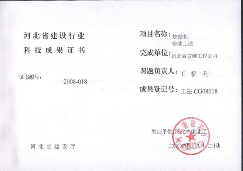 工法CG08018燒結機安裝工法